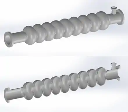 The most common fabrication technology for such SRF cavities is to form thin walled (1–3 mm) shell components from high purity niobium sheets by stamping. These shell components are then welded together to form cavities.