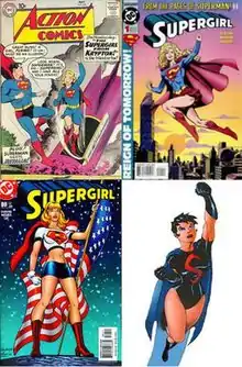 ![]() Iterations of Supergirl: the Silver Age original (top left), the Matrix version from the 1990s (top right), Linda Danvers (bottom left), and Cir-El (bottom right) | |