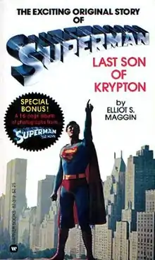 Superman: Last Son of Krypton is a novel written by Elliot S. Maggin and based on the DC Comics character Superman. It was published in 1978. The novel was published as a tie-in to the release of Superman: The Movie, with an image of Christopher Reeve on the cover and (in its original edition) a section of photographs from the film. The novel is not, however, a novelization of the film, and in fact diverges from the film story.