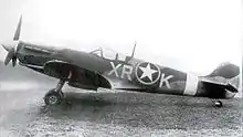 During this engagement, Walmsley scored the third of his 12 kills.[120] Spitfires were sometimes mistakenly attacked by USAAF P-51s. One such incident occurred on 31 December 1944, when 610 Squadron RAF was attacked. Using the Spitfire's "stunning" climb performance, pilots were "easily" able to escape and evade the Mustangs.[121] In December 1944, RAF Fighter Command lost 53 Spitfires on the western front to all causes. Just eight fell to enemy aircraft.[122] On 29 December Flt Lt Richard Audet, a French Canadian in No. 411 Squadron RCAF, shot down three Fw 190s and two Bf 109s during one sortie. Audet claimed a further five aircraft before he was shot down and killed in his Spitfire IX on 3 March 1945, while strafing a train.[123] On 1 January 1945 the Luftwaffe launched Operation Bodenplatte. Spitfire units took part in the air fighting that day, destroying at least 32 German fighters for the loss of 13 Spitfires.[124][125] Of these, seven were shot down in aerial combat, the remainder were strafed on the ground.[126]