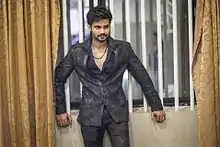 Suraj Gowda (born 13 April 1988)[1] is an actor in the Kannada film industry[2] who made his big commercial debut in Maduveya Mamatheya Kareyole under Thoogudeepa productions which bagged the biggest opening collection for a debutant in 2016. Suraj was nominated for the best actor category in SIIMA and IIFA Awards for his role in the movie Siliconn City (2017). Lakshmi Thanaya and Ninna Sanihake are his upcoming films.