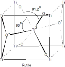 The majority of transition metal dioxides (MO2) have the rutile structure, seen to the right. Materials of this stoichiometry exist for Ti, Cr, V and Mn in the first row transition metal and for Zr to Pd in the second. The rutile structure is generated by filling half of the octahedral sites with cations of the hcp oxygen anion array.[5][6]