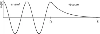 - The first type of states (see figure 2) extends into the crystal and has Bloch character there. These type of solutions correspond to bulk states which terminate in an exponentially decaying tail reaching into the vacuum.