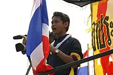 While a student at Kasetsart University, he had participated in Black May, a mass protest where people gathered to oust the junta government led by Suchinda Kraprayoon in 1992. During that time, he was also the secretary-general of Student Union of Thailand (SUT).[1][2]
