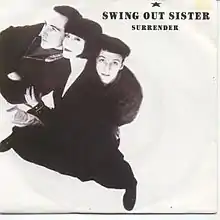 "Surrender" is a 1987 single released by British pop act Swing Out Sister from their debut album, It's Better to Travel. It was issued as the follow-up to the successful single, "Breakout". The song peaked at #7 on the UK Singles Chart in January 1987 and logged four weeks in the top ten.[1]