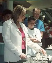In December 2006, she announced that she would run for election to the executive board of the United States Chess Federation.[32] Polgar, Randy Bauer, and Paul Truong—three of four of Polgar's slate—were elected to four-year terms. She was elected as the first ever chairman of the USCF.[33][34][35]