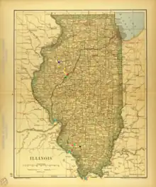 - Light Blue: The possible sites where Richardson’s group got on a steamship so that they could escape via the Mississippi and Illinois rivers: Cairo, Chester Landing, or Grafton