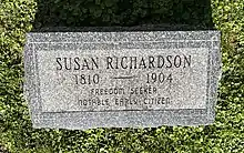 ![]() Susan Richardson's gravestone in Hope Cemetery, Galesburg | |