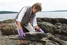 ![]() Shaw examining a harbor seal | |