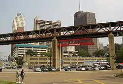 The Skybus Metro was a prototype suspended railway in Goa, India. The system consisted of an elevated track with the cars suspended below the track, like the Wuppertal Schwebebahn or H-Bahn systems in Germany. A 1.6-kilometre (0.99 mi) test track in Margao, Goa started trials in 2004, but on September 25, one employee was killed and three injured in an accident.[16] No progress was made after the accident.[17] In 2013, the metro was dismantled.[18][19]