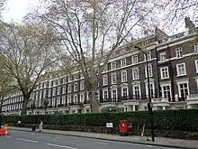 The street was originally known as Grand Junction Street, named after the nearby Grand Junction Waterworks. It was laid out as part of the ambitious street plan for Tyburnia in 1809, designed by the architect Samuel Pepys Cockerell.[2] Delays, partly caused by the Panic of 1825, meant that the street wasn't fully completed until the early Victorian Era to a revised plan by George Gutch. The first houses were available for lease in 1826 at the Edgeware Road end.[3] The space in between it and the Uxbridge Road to the south was half laid out by 1839.[4] Before long the street and surrounding terrain was a fashionable residential centre.[5] St James's Church was constructed as the new parish church of Paddington, the current building of today designed in 1881-82 largely replacing an earlier building established in the early 1840s.[6] By the twentieth century, the street had become known for the large number of boarding houses and hotels located on it.