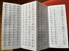 Some scholars believe that the Longer Sukhāvatīvyūha Sūtra was compiled in the age of the Kushan Empire in the first and second centuries by an order of Mahīśāsaka monastics who flourished in the Gandhāra region.[1][2] It is likely that the longer Sukhāvatīvyūha owed greatly to the Lokottaravāda sect as well for its compilation, and in this sūtra there are many elements in common with the Mahāvastu.[1] The earliest of these translations show traces of having been translated from the Gāndhārī language, a prakrit used in the Northwest.[3] It is also known that manuscripts in the Kharoṣṭhī script existed in China during this period.[1]