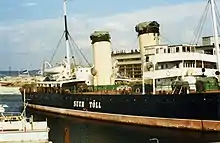 When Ants Pärna, the director of the Estonian Maritime Museum, found out that Volynets was going to be scrapped, he decided to purchase the icebreaker for the museum in order to preserve it. After a long negotiation, the Commander-in-Chief of the Soviet Navy agreed to trade the ship for 300 tons of scrap iron.[10] On 10 October 1988, a delegation from the Estonian Maritime Museum arrived at Lomonosov to inspect the old icebreaker. When the seagoing tugboat Tjulen began towing her towards Tallinn in the following evening, the other ships in the port saluted the old icebreaker with their horns. 31 hours later, on 13 October 1988, Volynets dropped her anchor outside the port of Tallinn. On 21 November 1988, the icebreaker was given back her old name, Suur Tõll. On 24 August 1991, four days after Estonia regained full independence, she raised the blue-black-white flag of Estonia for the first time and on 23 December she became the first ship to be added to the newly founded Estonian Ship Register with register number 001. She was opened to the general public on 2 December 1994.[2]
