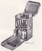 In the 1930s, Sieverts Lödlampfabrik (maker of the original Svea 123) produced the Campus No. 3 stove. Much like the later-produced Svea, it was a self-pressurizing stove with an integrated windscreen and an aluminum lid that doubled as a cook-pot, but was slightly narrower and taller (80 mm x 150 mm) than the Svea. Because of its small size, the Campus No. 3 was advertised as a "boon to Hikers, Cyclists, and Travellers generally."[30] Also in the 1930s, Optimus introduced the No. 6 stove, which was nearly identical to the Svea 123 in size, weight, capacity, operation and design.[31] Optimus dropped the No. 6 in the 1940s and did not produce a similar model until its acquisition of the Svea line in 1969.[4]