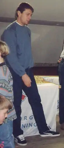 ![]() Andersson in 1995, during an award ceremony for Helsingborgs IF's youth players. | |||