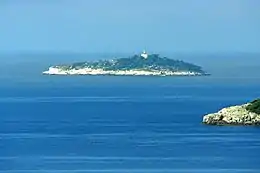Sveti Andrija (Croatian for "Saint Andrew") is an island in the Croatian part of the Adriatic Sea. It is part of the Elaphiti Islands archipelago, Dalmatia and is situated 6 nautical miles (11 km) from Dubrovnik, 3 nautical miles (6 km) from Koločep, 2 nautical miles (4 km) from Lopud and 4 nautical miles (7 km) from Šipan.[4] The island is 475 metres (1,558 feet) long, and its maximal width is 130 metres (430 feet), while its coastline is 1,130 m (3,710 ft) long. The total area of the island is 53,757 square metres (578,640 square feet), with a maximum height elevation of 57 m (187 ft) above sea level.[5]