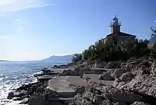 Sv. Petar (Sveti Petar, St. Peter) is a small peninsula at the port entrance of Makarska, Croatia. It is named after a 13th-century church of St. Peter. Today the peninsula serves as a city park and beach. The rocky beach on the outside of the peninsula is clothing optional but mostly used by naturists. Nearby the beach is the Sv. Petar lighthouse, built in 1884.[1]