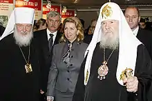 Medvedeva became First Lady when her husband, Dmitry Medvedev, took over as president following his victory in Russian Presidential elections on 7 May 2008. In the same year, Medvedeva headed the initiative for the institution of Family Day in Russia. Medvedeva has already caused something of a media frenzy, even though she shies away from photographers and rarely gives interviews.[3] Medvedeva currently chairs the management council of multi-tier program Spiritual and moral culture of younger generation of Russia created with blessing of Alexy II of Moscow.[4] In an interview, Medvedeva detailed her views on the interaction between the Russian Orthodox Church and the Government of Russia in promoting family policies.[5] Medvedeva has taken up an anti-abortion cause in Russia's efforts to restrict abortion in 2011.[6]