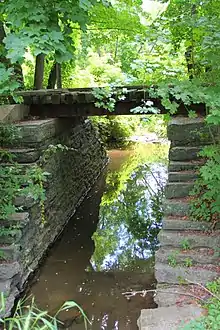 There are several road crossings and a railroad bridge crossing over Swale Brook. A number of industries also historically operated near the stream. The stream's watershed is designated as a Coldwater Fishery and a Migratory Fishery and the stream itself has a high level of fish diversity.
