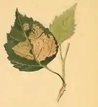 The larvae feed on Betula species. They feed on the parenchyma on the upperside of a leaf, beneath a silken web.