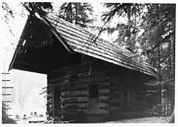 The Swamp–Meadow Cabin (west) is in North Cascades National Park, in the U.S. state of Washington. Constructed sometime in the early 1910s by the North Coast Mining and Milling Company, the cabin was a warm season residence used by company employees for storage and residence while working their mining claims on Thunder Creek.[2] The 1+1⁄2-story cabin was constructed plainly of 16 in (410 mm) round hewn logs, square notched at the corners. The cabin is 18 by 22 ft (5.5 by 6.7 m) with an offset door at the east end, above which it is sheltered by the 10 ft (3.0 m) extension of the gable roof which is wood shingled.[2] Swamp–Meadow Cabin (west) is near Swamp–Meadow Cabin (east), and both were placed on the National Register of Historic Places in 1989.[2]