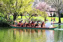 The Swan Boats are a fleet of pontoon pleasure boats which operate in a pond in the Public Garden in Boston, Massachusetts. The Swan Boats have been in operation since 1877, and have since become a cultural icon for the city. They operate beginning the second weekend of April and ending Labor Day weekend in September.[1]
