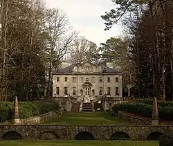 Swan House was designed specifically as a residence for Edward and Emily Inman, who were the affluent heirs to a cotton fortune.[6] The Inmans used their money to help rebuild Atlanta after the destruction it endured during the Civil War.[9] Phillip Schutze himself gave the Swan House its colloquial name, based on the motif of swans present throughout the house's interior — the swan motif was one of his "favorite things" about the house.[9] In addition to the house itself, the Inmans also owned the surrounding 28-acre estate, including other facilities such as a garage, servants' quarters, and a barn.[10]