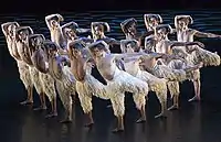 ![]() The company of swans from Matthew Bourne's Swan Lake during the company's 2005 UK tour, featuring danseur Alan Vincent as the lead Swan | |