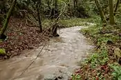 There are approximately 316 acres (128 ha) in the Little Creek Forest Management area. The first cutting was done between 1907 and 1911 by clear cut and burn railroad logging. Forty acres of the second growth Redwood were harvested in the 1960s. There was very little timber left to manage. With the exception of the 40 acres (16 ha) of second growth Redwood that was cut, the logging in Little Creek Forest generated an even-aged stand approximately 80 years old of Douglas fir and Redwood trees. The under story trees consist of mostly Tanoak with a few Madrones mixed in. Piper, Kelly and Anderson in 1989 conducted a continuous forest inventory survey. They established an inventory of 26,163 bd ft/acre (152.56 m3/ha) for Redwood and 17,318 bd ft/acre (100.98 m3/ha) for Douglas fir. They did this using 1⁄5 acre (0.081 ha) CFI plots. The plots were reestablished in 1997 by Larry Bonner. This inventory indicated 28,612 bd ft/acre (166.84 m3/ha) for Redwood and 8,923 bd ft/acre (52.03 m3/ha) for Douglas fir. Currently the distribution is approximately 76% Redwood and 24% Douglas fir (Bonner 1998). The preferred management of this unit would be an uneven aged stand with a mix of 70% Redwood and 30% Douglas fir. Presently Cal Poly SLO students are converting this unit to an uneven-aged stand. This meets the Santa Cruz timber regulations for selective harvesting.[13] The forestry program has completed two timber harvest plans for the Little Creek Unit that complied with State and Local Timber Regulations. The first harvest was completed in 1990-91 and harvested 1,500,000 bd ft (3,500 m3) for a gross return of $200,000. The second was undertaken in 1993-95 and grossed $542,803 for the same amount of timber.[14] The difference in the return was due to the increase in timber prices over the years. Presently, 259 of the remaining 315 acres (127 ha) have been harvested over the last fifteen years. One more area will be harvested over the next two years. Cutting cycles are planned for ten to fifteen year periods with an evaluation done after five years.[15] Little Creek Forest inventory plots were established with permanent markers on a 500-by-500-foot (152.4 m × 152.4 m) grid. The stands are divided by forest inventory, topography and access. A total of eight stands currently exist in the North and South Fork units. Each stand will have an ongoing evaluation data sheet developed to measure environmental factors such as effects on the trees due to disease, mass land movements and fire. A schedule of work will also be developed for each stand. A non-industrial timber harvest plan has been completed also been approved.[13]