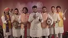 Swaraag band was founded in April 2014 when Arif Khan, a freelance Zitar and Sitar player, met Pratap Singh during a Concert. Pratap had a vision of bringing forth folk music to the mainstream commercial industry.[16] By the end of 2014, they were ready with their new genre of Music. Pratap Singh suggested the name "Swaraag" - an indo-western fusion band. Requests for Wedding & Corporate Events started pouring and Swaraag was introduced on stage for the first time as an instrumental band and the band has 4 artists along with instruments such as Zitar, tabla, guitar, saxophone. Later they added vocals to the band, to showcase it to the larger audience, And thus added lead singer Asif Khan, Drum and Khartal instruments.[17][18]