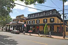 Swedesboro, initially named Sveaborg by the Swedish settlers, along with Bridgeport (Nya Stockholm) and Finns Point (Varkens Kill), was one of only three settlements established in New Jersey as a part of the New Sweden colony. The oldest extant log cabin in the U.S., C. A. Nothnagle Log House (c. 1640) was built by Antti Niilonpoika (Anthony Neilson/Nelson) in Swedesboro.[28] It is listed on the National Register of Historic Places, as is Trinity Episcopal "Old Swedes" Church, which was established as a Swedish Lutheran Church in 1703; the present building dates to 1784.[29]