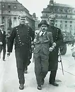 In the early 1900s, the Swedish police had yet to uniformly organize or become regulated in legislation. The system of "extra police" did not work well, partly because it was often a temporary position lacking job security, making it difficult to recruit and retain skilled personnel.[26] Subsequently, the Riksdag adopted the first Police Act in 1925.[27] The act essentially codified structures already in place, but also introduced a more unified police and better working conditions for the police officers. Officers began wearing the same dark-blue uniforms nationwide, with the same weapons and helmets.[28] Local ties remained strong, however, with 554 small districts that had great freedom to organize police work as before, even though the State now had the power to issue a number of regulations about everything from leadership to the duties of the police.[29] There were still some problems maintaining order when larger crowds gathered, as evidenced by the Ådalen shootings in 1931, where the military was called in as reinforcement during a violent labor dispute, killing five. In rural areas, the detective work were also often rudimentary. Accordingly, the Swedish State Police (statspolisen) was established in 1932, which would complement the municipal police.[30]