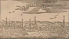 At the time of the invasion, the Saxon defence consisted of 9,000 infantry (of which 4,000 were garrisoned in Dresden) and 2,000 cavalry and dragoons. There was also 5,000 land-militia and a few thousand experienced hunters,[2] but their military training was considered inadequate.[25] In total, there was at least 16,000 men of mixed quality.[2] Schulenburg, anticipating a Swedish march through Lower Lusatia, assembled his regular troops there while most of the militia and hunters were sent to the garrisons in Dresden, Wittenberg, Leipzig with the Pleissenburg castle,[26] and Königstein.[27] Charles XII had roughly 250 of his own and Leszczyński's Drabants, 4,952 cavalry, 3,130 dragoons, 11,452 infantry, 200–500 Wallachian cavalry,[lower-alpha 1] and 50 despatch riders available for the invasion.[29][30][31] In total, about 20,000 men.[1] There were also 48 guns with 800 artillery gunners present (paper strength).[31][32]