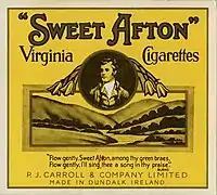 Sweet Afton was an Irish brand of short, unfiltered cigarettes made with Virginia tobacco and produced by P.J. Carroll & Co., Dundalk, Ireland, now a subsidiary of British American Tobacco.[4]
