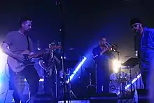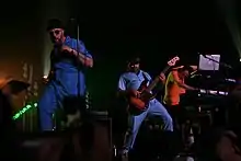 Swim Herschel Swim had enthusiastic audiences who liked to dance, including moshing.[21][3] They frequently performed at a dance and martial arts studio called Center Stage. Anderson reported that they frequently attracted crowds of over 1,000 people.[3] The band was banned from a repeat performance at Center Stage in Provo after audience members damaged property during a performance.[21] In the spring of 1992, they hosted a concert to shoot footage for a music video in the Ventura Film Studio (the old Osmond studios) in Orem, Utah. According to Armstrong, over 1,000 people attended the performance.[9] On October 3, 1992, they opened for The Special Beat, also at the Ventura Film Studio.[22] Afterwards, the Orem planning commission ruled that the studio should not be zoned as a club. Armstrong stated that with the loss of the Ventura Film studio venue, they had nowhere they could perform in Utah county.[9] Jimmy Thompson, lead singer for My Man Friday, recalled that Swim Herschel Swim shows would regularly draw "a couple thousand people".[23]