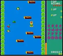 Swimmer (スイマ一) is a vertically scrolling arcade game from Tehkan, published in Japan in 1982.[2] It was licensed to Centuri for distribution in North America.[3] The gameplay involves swimming up a river while avoiding logs and various marine life.