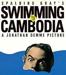 Swimming to Cambodia, also known as Spalding Gray's Swimming to Cambodia, is a 1987 American concert film written by and starring Spalding Gray, and directed by Jonathan Demme.[1] The performance film is of Gray's play and monologue, which centered on such themes as his trip to Southeast Asia to create the role of the U.S. Ambassador's aide in the film The Killing Fields, the Cold War, Cambodia Year Zero, and his search for his "perfect moment".[1] It was nominated for Best Feature, Best Director, Best Actor, and Best Screenplay at the 1988 Independent Spirit Awards.