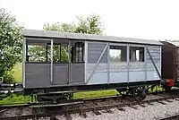 | LMS | PBA27 | 4-wheel ventilated van | Unknown build date. Later used by the Port of Bristol Authority and numbered 27. Recently restored to operational condition and painted blue with a 'Jewson' logo. [14] | ![]() |