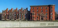 The Swinford Townhouses and Apartments are a development of townhouses and apartments in the Loring Park neighborhood of Minneapolis, Minnesota, United States. Both buildings are located in an area that surrounded the once-elegant Hawthorne Park. The townhomes were built first, in 1886 by Hodgson & Sons in the Second Empire style, using red brick, stone, and terra cotta. The apartments were designed in 1897 by locally prominent architect Harry Wild Jones, who preferred an eclectic style. The building is four stories tall, built of red brick and stone, and features a corner bay. They were built by Anthony Kelly, a nineteenth-century businessman who pioneered the wholesale grocery business in Minneapolis. Both the townhouses and the apartments were listed on the National Register of Historic Places in 1990.[2] The apartments are now incorporated in the Laurel Village development.[3]