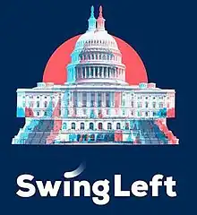 Swing Left is a progressive political group with Hybrid PAC status in the United States that was created following the election of Donald Trump in 2016 with a goal of gaining a Democratic majority in United States legislatures. The group was founded by Ethan Todras-Whitehill, Miriam Stone, Josh Krafchin, Michelle Finocchi, and Matt Ewing to create ways for Democrats to volunteer in their nearest swing district. Its initial mission was to win a Democratic majority in the House of Representatives in 2018 by building a network of volunteers and donors in targeted swing districts across the U.S. Swing Left uses a margin of fifteen points to determine which seats are considered "swing seats", and then concentrates their efforts there.[1] Swing Left cast a broader net in 2019, when they began putting effort toward maintaining a Democratic majority in United States State Legislatures after merging with another organization, Flippable.[2] Swing Left focuses on training volunteers to register voters, phone bank, fundraise, and engage in door-to-door campaigning for Democratic candidates.[3]
