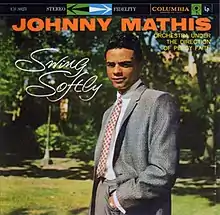 Swing Softly is the fifth album by American pop singer Johnny Mathis that was released on July 28, 1958,[1] by Columbia Records and was a departure from the ballads that accounted for the vast majority of singles and album tracks he had recorded thus far. This project features uptempo arrangements of popular standards, most of which originated in a movie or stage musicals, and a couple of new songs: "To Be in Love" and "Easy to Say (But Hard to Do)".
