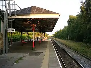 An intercom unit is also installed on the platform which passengers can use in the event of an emergency or if they need help or information when the station is unstaffed. As the ticket office is at street level on the bridge above, and is connected to the platforms via a staircase, no step-free access is available for wheelchair or mobility-impaired users.[2]
