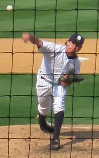 Pat Venditte, a Major League pitcher from 2015 to 2020, regularly pitched with both arms.[4] Venditte was drafted by the New York Yankees, played for the Seattle Mariners, Toronto Blue Jays, Philadelphia Phillies, Oakland Athletics, Los Angeles Dodgers, San Francisco Giants and Miami Marlins.