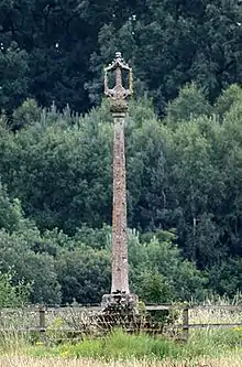 The original Swithland Hall, which stood at the eastern end of the village as it is today, on the site now occupied by Hall Farm, was destroyed by fire in 1822, although part of the hall's boundary wall, including two towers are still in existence, both of which are in Main Street.[6][9] The current hall, a Grade II listed building, was partially completed in 1834 and finished in 1852,[10] on a different site to the south-east, in what was then known as Swithland Park, by John George Danvers Butler, sixth Earl of Lanesborough.[3][11] The estate includes the Mountsorrel Cross that originally stood in Mountsorrel that dates from about 1500 and was moved to its current location in Swithland Park in 1793 by Sir John Danvers, who replaced it with the Buttermarket Cross that still stands there.[3][12]