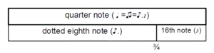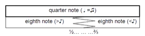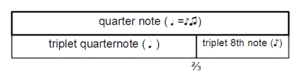 • Notes inégales, a 17th-century French usage of similar meters and notation