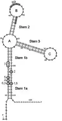 ![]() Secondary structure of the sxy 5′-UTR regulatory element | |
