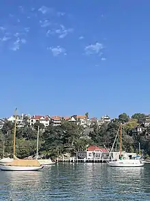 The original clubhouse was located at Bennelong Point, now the location of the Sydney Opera House.[6] The club acquired the current clubhouse in August 1962[7] and this is situated at Cremorne Point.[8] Upon European settlement in 1788 the area became known as Careening Point and HMS Sirius was refurbished in the bay in 1789.[9] The clubhouse building features in the famous painting,The Harbour from Mosman, 1926 by Arthur Streeton.[10]