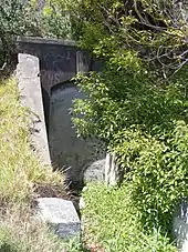 Adjacent to the winch house stood a stone marker that had existed for 90 years prior to the boom net's construction. Erected in 1850, this was used as a navigational leading mark for the Eastern Channel; it was lined up with the back mark which still stands on the west side of Parsley Bay.[10]