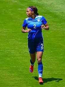 Leroux played at the 2012 CONCACAF Women's Olympic Qualifying Tournament as a member of the United States senior national team.[69][70][71] In her second cap for the senior side, Leroux scored five goals in a CONCACAF Olympic qualifying match between the U.S. and Guatemala; the final score of the match was 13–0.[72] Leroux's performance tied the record for goals scored in a single match by one player in a CONCACAF Olympic Qualifying Tournament. She also tied the single-game record for the national team,[73] equaling previous performances by her teammates Amy Rodriguez and Abby Wambach in 2012 and 2004 respectively.[13][74]