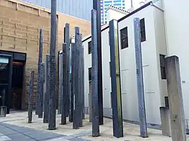 When it was commissioned, the project was called the First Government House Museum.[3][4][5] While the museum building was under construction in November 1993, the New South Wales Minister for the Arts announced that the museum would be known as the Museum of Sydney on the Site of First Government House,[6][7] described in the press at the time as a "mouthful"[6] and commonly contracted to The Museum of Sydney.[3] The change of name attracted protests.[8][3][4]